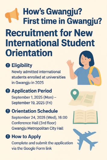광주시는 지난 4월부터 ‘외국인 유학생 종합지원계획’을 수립해 2029년까지 ‘유학생 1만2000명 유치, 정주율 10% 달성!’ 목표 아래 대한민국 대표 유학도시로 도약하기 위해 노력하고 있다.