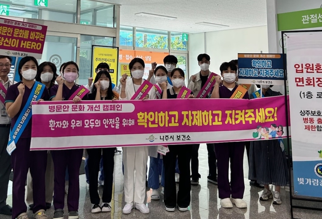 나주시보건소는 지난 19일 나사렛요양병원과 노블요양병원, 22일 빛가람종합병원 등 3개 병원을 방문해 ‘병문안 3대 원칙’인 확인하기, 자제하기, 지켜주기를 집중적으로 홍보했다.