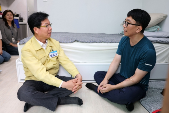 ![]() 박병규 광산구청장이 지난 29일 ‘살던집 프로젝트’의 ‘중간집’에 입소한 주민을 위문했다. |