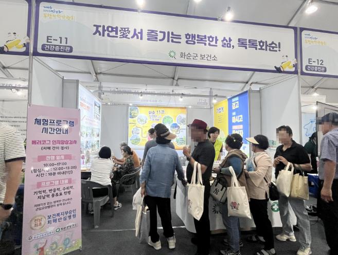 화순군보건소는 ‘자연愛서 즐기는 행복한 삶, 톡톡 화순!’이라는 주제로 전남 유일 치매안심병원인 화순군립요양병원과 함께 ▲치매예방 퍼즐 맞추기 ▲인지검사(베러코그 인지 향상 프로그램) 등 치매예방 프로그램을 운영하여 관람객들에게 치매 예방과 인지건강 관리의 중요성을 알리고, 화순군이 전남에서 치매예방 사업의 선도적인 역할을 하고 있음을 널리 홍보했다.