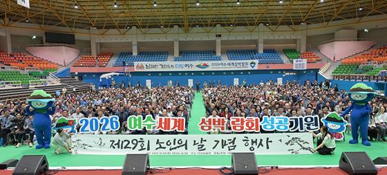특히 2026여수세계섬박람회 성공개최를 응원하는 퍼포먼스가 진행돼 행사장에 모인 어르신과 내빈이 함께 섬박람회 성공을 기원하며 힘찬 구호를 외쳤다.