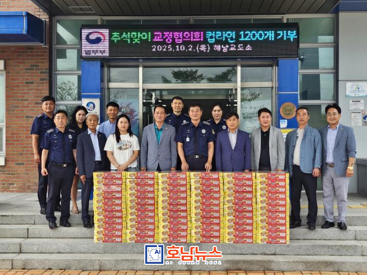 해남교도소교정위원회는 10월 2일 오전 11시, 수형자 520여 명에게 명절 간식인 컵라면 1,200개를 전달하는 ‘추석맞이 온정 나눔 행사’를 개최했다.