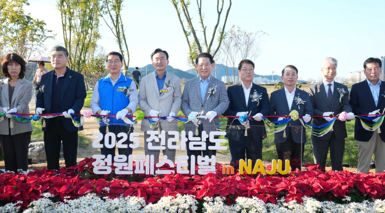 ![]() 2025년 전라남도 정원 페스티벌 개막식(김영록 전라남도지사가 8일 나주 영산강정원 일원에서 열린 ‘2025년 전라남도 정원 페스티벌 개막식’에 참석해 주요내빈들과 테이프 커팅을 하고있다.) |