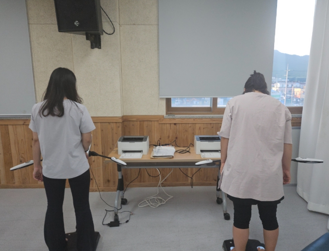![]() 직장인들이 신체활동에 임하고 있다. 2. 참여자들이 사업전‧후 체성분검사를 시행하고 있다. |