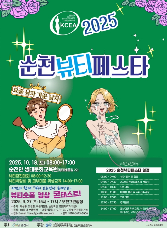 이번 행사는 순천형 K-뷰티 문화 소개 및 산업 활성화·지역 미용 인재 양성을 위해 순천시에서 주최하고, (사)한국피부미용사회 전남지회 순천지부 주관으로 진행된다.