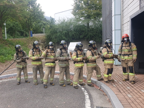 ![]() 실제 화재 대응 훈련을 하는 장면 |