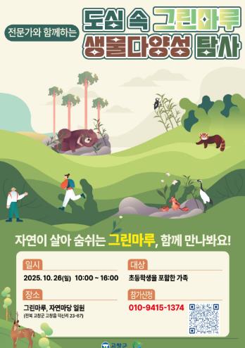 ![]() 고창군, ‘도심 속 그린마루 생물다양성 탐사대’ 참가자 모집 |