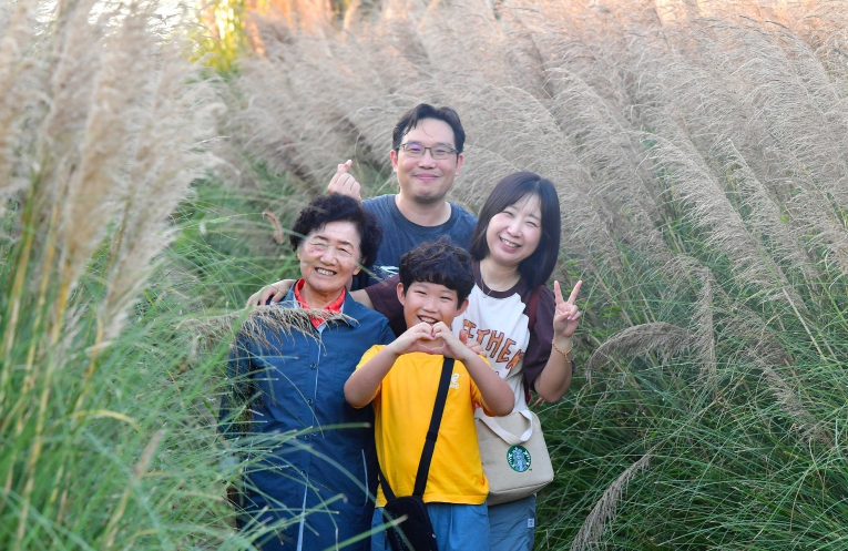 ![]() 내려받기장성 황룡강을 찾은 가족이 팜파스 그라스 사이에서 포즈를 취했다. |