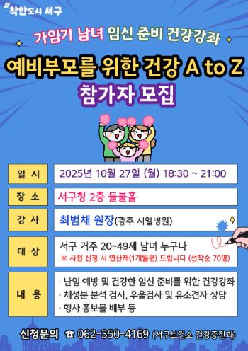 ![]() 광주광역시 서구, 예비부모 임신 준비 돕는다 |