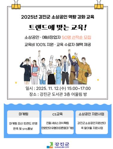자세한 사항은 강진군청 소상공인 역량강화 교육 담당자에게 문의하면 된다.