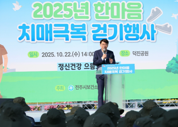 전주시보건소는 22일 덕진공원 일원에서 우범기 전주시장과 최주만 전주시의회 부의장, 치매환자와 가족 등 전주시민 700여 명이 참석한 가운데 ‘2025년 한마음 치매극복 걷기’ 행사를 개최했다.