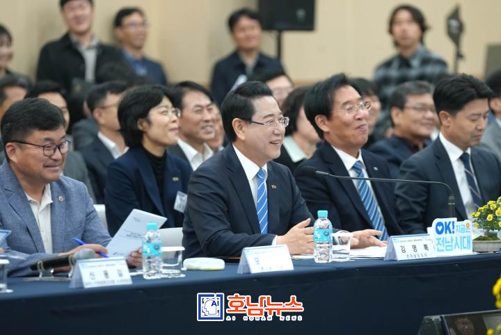 On the 28th, the province held the “Hampyeong County Policy Vision Tour” at the Eoullim Community Center in Hampyeong-eup, attended by Governor Kim Yung-rok, Hampyeong County Mayor Lee Sang-ik, Provincial Assemblyman Mo Jeong-hwan, County Council Chair Lee Nam-oh, and about 120 residents and youth participants.