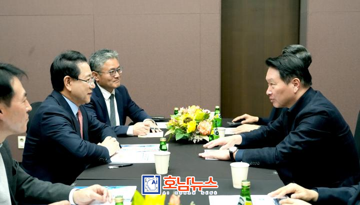 ![]() SK 최태원회장 면담 / 사진제공=전라남도 |