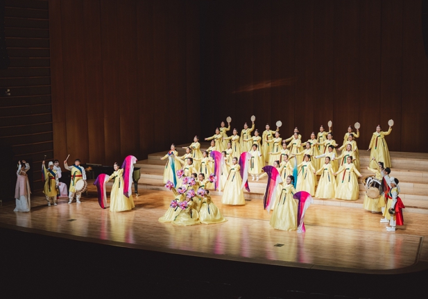 나주배를 상징하는 금빛 한복을 입은 단원들은 국악기와 어우러진 한국적 연출로 무대를 감동으로 물들였다.