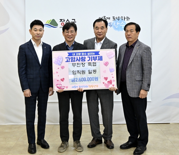 장수군은 10일 군청에서 최훈식 장수군수, 송제근 조합장, 백형수 장수지점장이 참석한 가운데 고향사랑기부금 기탁식을 진행했다고 밝혔다.