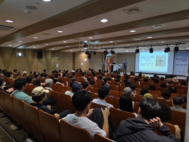 ![]() 지난 9월 시청 직원과 순천시민을 대상으로 시민인문학 '도서관에서 만난 사람' 강연을 진행하고 있다 |