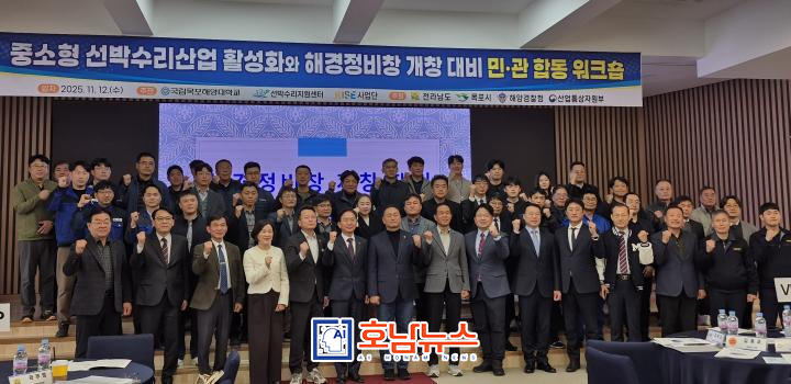 전남도는 12일 목포에서 해양경찰정비창, 전남도의회, 김원이 국회의원, 조선산업 혁신기관 및 기업 관계자 등과 함께 ‘지역 수리조선산업 활성화 민관합동 워크숍’을 개최했다고 밝혔다.