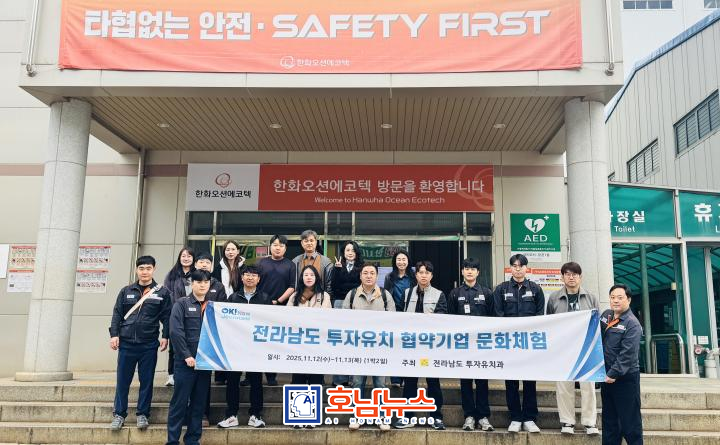 행사에 참여한 한화오션에코텍 관계자는 “전남의 다양한 매력을 가까이에서 느끼며 직원 간 소통과 이해가 더 깊어졌다”며 “앞으로도 전남과 함께 성장하며 활기 넘치는 기업 문화를 만들겠다.”고 소감을 전했다.