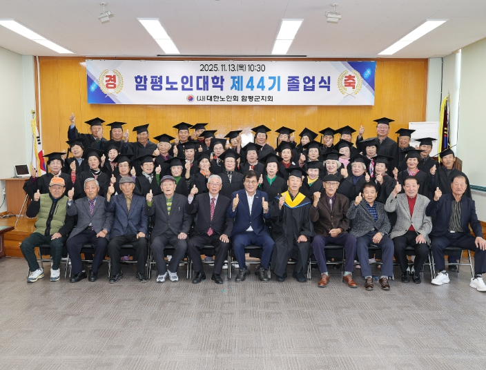 함평군은 14일 “제44기 노인대학 졸업식이 지난 어르신 졸업생 44명이 참석한 가운데 대한노인회 함평군지회 대강당에서 성황리에 마무리됐다”고 밝혔다.