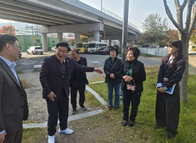 또한 공원 건너편 보도블록이 가로수 뿌리로 인해 울퉁불퉁해진 점과 가로등 부재로 야간 통행이 불편한 점을 확인하고, “인도가 없는 건너편에 가로등이 설치되어 사실상 무용지물인 상황”이라며,“관련 부서가 협력해 조속히 개선 방안을 마련해야 한다”라고 강조했다.