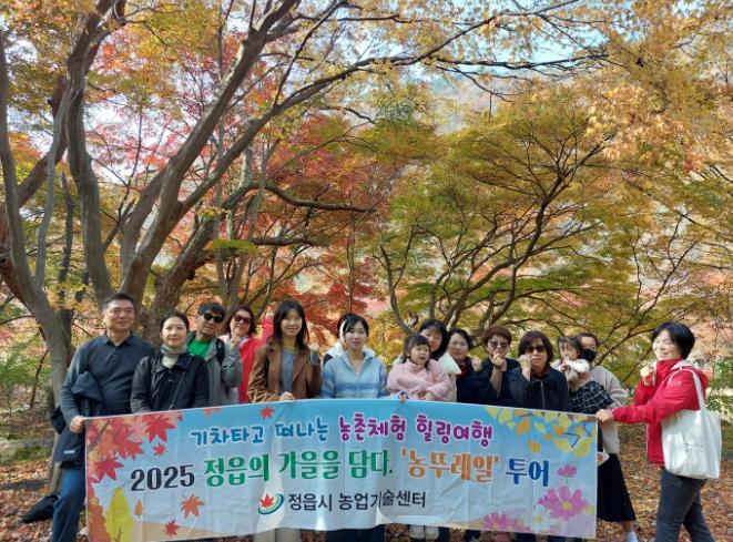 이용관 농업기술센터 소장은 “이번 가을 ‘농뚜레일 투어’는 참가자들의 높은 만족도와 체험 프로그램의 완성도를 통해 정읍 농촌체험 관광의 매력을 다시 한번 확인할 수 있는 자리였다”며 “앞으로도 계절별 특색 있는 체험 콘텐츠를 지속적으로 발굴해 정읍의 자연과 문화, 농촌 매력을 더욱 널리 알리겠다”고 말했다.