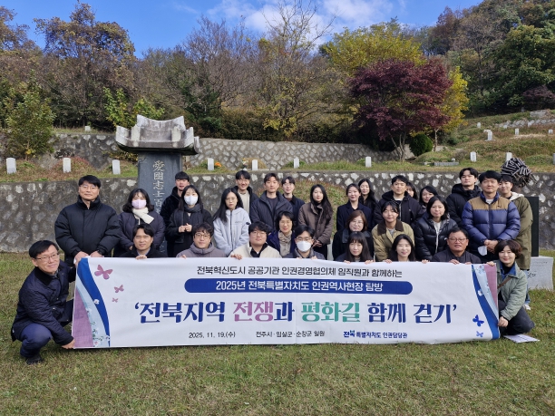 올해 탐방은 ‘전북지역의 한국전쟁과 평화길’을 주제로 운영됐으며, 참가자들은 전북 인권 역사의 주요 현장을 직접 둘러보며 평화와 인권의 가치를 되새기는 체험형 교육을 받았다. 전북도는 이번 프로그램을 통해 공공기관 임직원의 인권 의식 제고와 지역사회 인권경영 확산에 의미 있는 성과가 있을 것으로 평가했다.