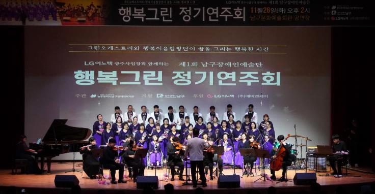 19일 남구에 따르면 제2회 남구 장애인 예술단 행복그린 정기 연주회가 오는 25일 오후 3시부터 남구 문화예술회관 공연장에서 열린다.