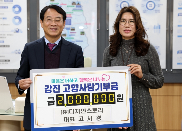 이어 광주 남구에 소재한 출판, 디자인 기업 (유)디자인스토리의 고서경 대표는 이웃 강진의 발전을 위해 한달음에 달려와 고향사랑기부금을 쾌척했다.