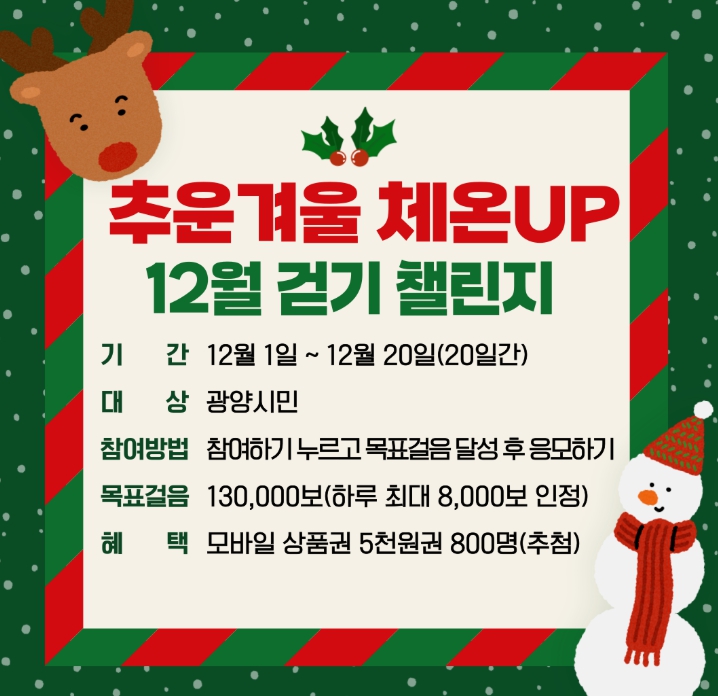 ![]() 광양시, 워크온 ‘추운겨울 체온UP 12월 걷기 챌린지’ |