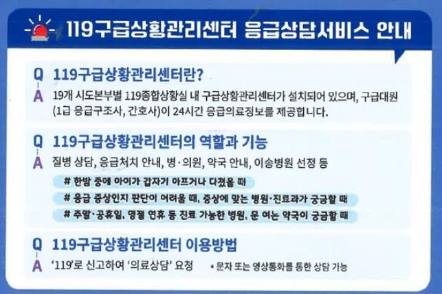 ![]() 119구급상황관리센터 응급상담서비스 안내 |