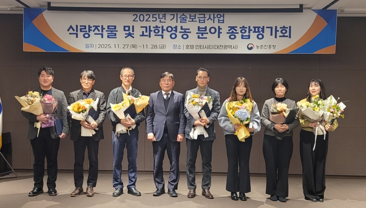 ![]() 27일, 대전광역시 호텔 인터시티, 2025년도 기술보급사업 종합평가회 단체사진 |