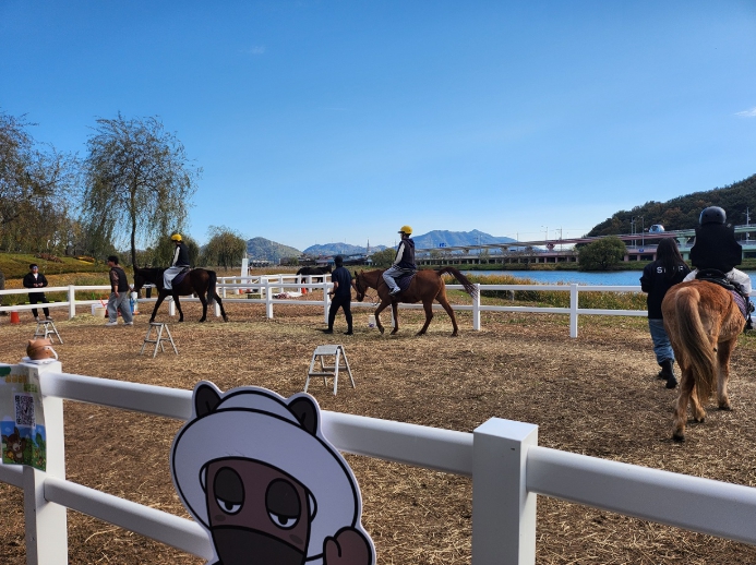 승마체험은 유료로 운영하며, 울타리 안을 한바퀴 도는 단순 체험이 아닌 동천을 따라 잔디 위를 거닐며 말과 교감하고 힐링하는 경험을 제공할 예정이다.