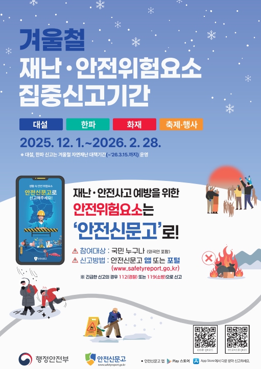 ![]() 겨울철 재난·안전 위험요소 집중신고기간 운영 |