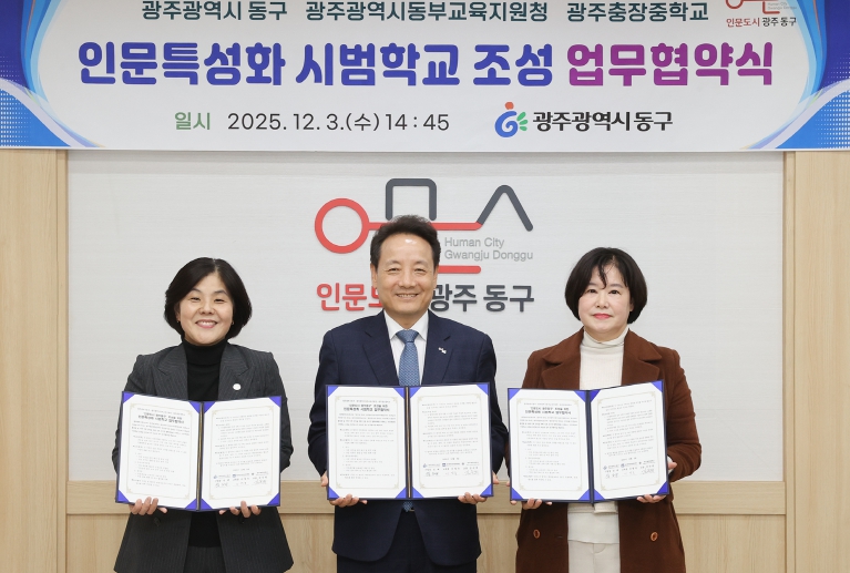 이번 협약은 ‘인문도시 광주동구’ 정책을 교육 분야로 확장하고 청소년 인문소양을 체계적으로 강화하기 위한 사업의 일환이다. 동구는 관내 학교, 동부교육지원청과 학생 규모, 혁신학교 운영, 교육과정 자율성 등을 종합 검토했고, 그 결과 충장중학교가 첫 시범 중학교로 선정됐다. 구는 향후 시범운영 성과를 바탕으로 타 학교로 단계적 확대도 추진할 계획이다.