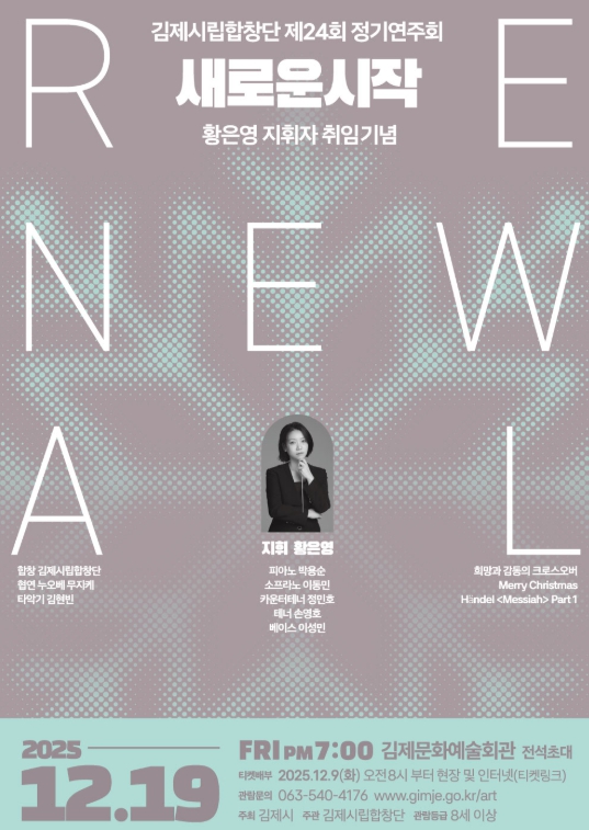 김제시립합창단 관계자는 “이번 연주회는 성탄의 기쁨과 ‘새로운 시작’의 설렘을 음악으로 담아낸 무대”라며 “시민들이 공연을 통해 따뜻한 위로와 희망을 얻는 시간이 되길 바란다”고 전했다.