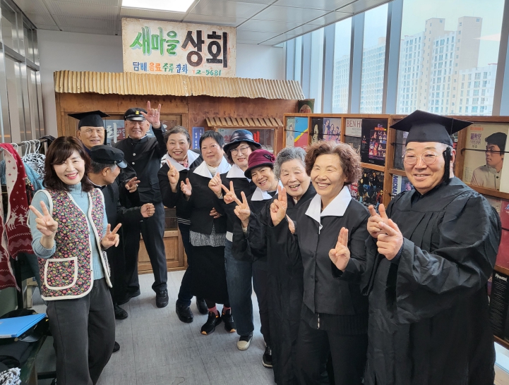 ‘피어나는 기억점빵’은 추억 속 교복과 LP판, 옛 상회소품, 다방분위기 등을 재현한 다양한 추억물품을 배치해 어르신들이 자연스럽게 과거의 정서를 떠올리며 친숙함을 느낄 수 있도록 구성된 공간이다.