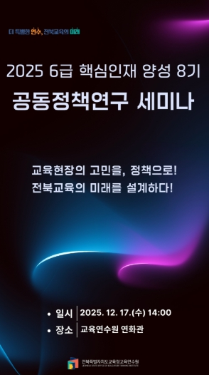 민완성 원장은 “이번 세미나는 단순한 성과 발표를 넘어, 교육행정 현장의 고민을 정책으로 연결하는 의미 있는 과정이었다”며 “앞으로도 전북교육의 변화를 이끌 핵심인재 양성에 지속적으로 힘쓰겠다”고 밝혔다.