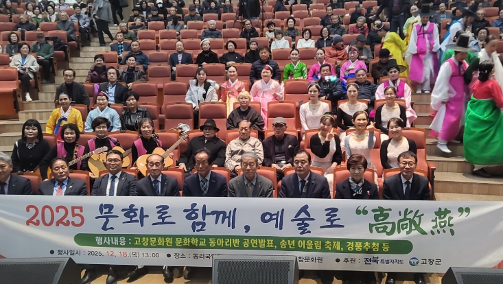 이현곤 고창문화원장은 “올 한 해 문화예술을 향한 열정으로 함께해주신 회원 여러분의 결실을 확인하는 뜻깊은 자리였다”며, “앞으로도 고창문화원이 지역 문화예술의 거점으로서 군민들이 예술로 소통하고 행복을 나눌 수 있는 다양한 프로그램을 지속적으로 마련하겠다”고 밝혔다.