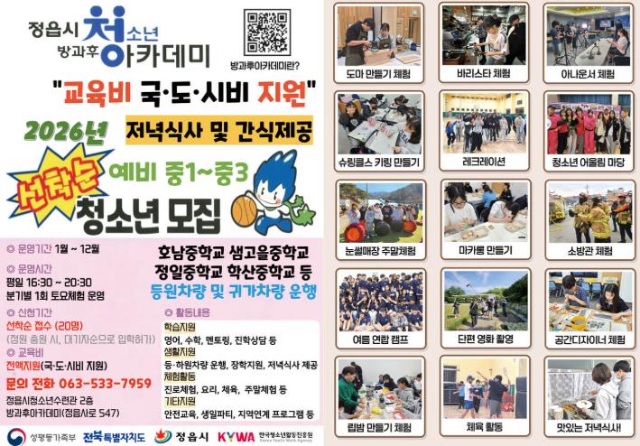 ![]() 정읍시, “청소년 꿈 키운다”... 2026년 방과후아카데미 신입생 모집 |