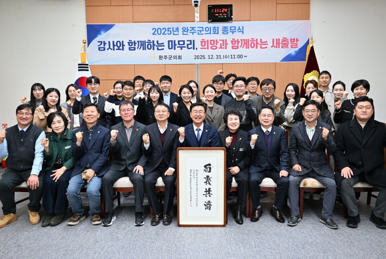 유의식 의장은 송년사에서 “2025년 한 해 동안 완주군의회는 주민과의 소통을 바탕으로 현장 중심의 의정활동과 다양한 정책 대응에 최선을 다했다”며, “앞으로도 군민의 삶을 더욱 풍요롭게 하는 의정활동에 매진할 것”이라고 말했다.