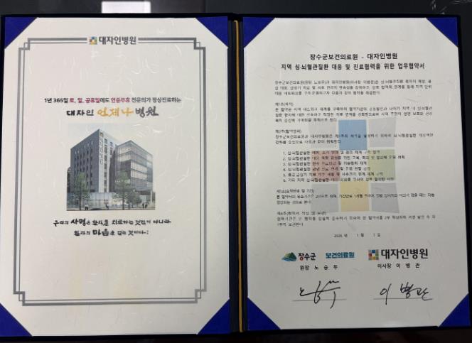 이번 협약은 전문 의료기관과 지역 내 증가하고 있는 심뇌혈관질환 환자의 예방부터 응급 대응, 급성기 치료, 재활 및 사후관리까지 전 과정에 걸친 협력 체계를 구축해 군민건강 증진에 기여한다는 취지에서 진행됐다.