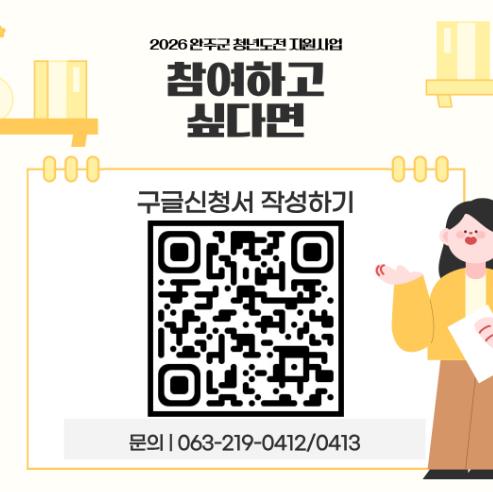 상세한 내용은 완주군 청년도전 지원사업 담당자를 통해 안내받을 수 있다.