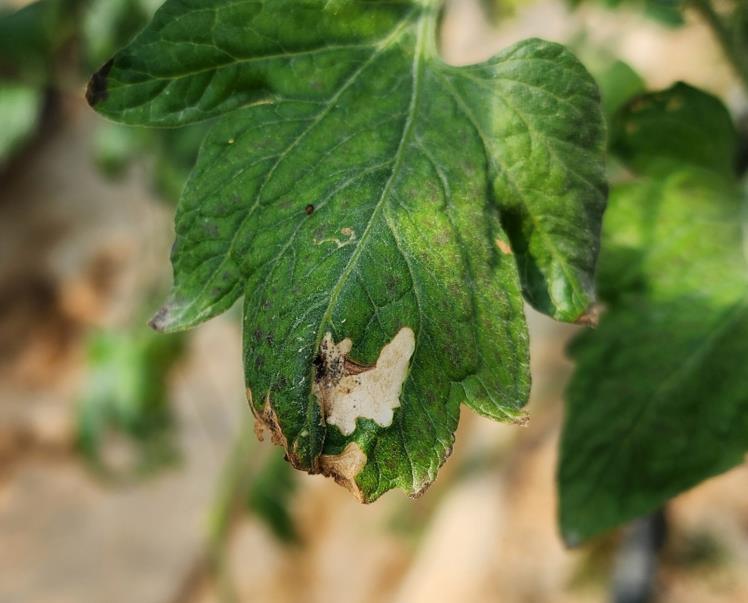 ![]() 토마토 뿔나방 유충 피해를 본 잎. |
