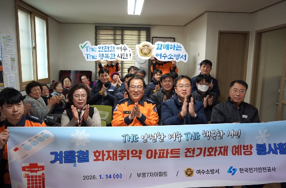 여수소방서와 한국전기안전공사 여수지사는 부영7차아파트 내 65세대에 자동소화멀티탭을 보급하고, 전기화재 예방 홍보와 함께 생활 속 화재 안전수칙을 안내했다.