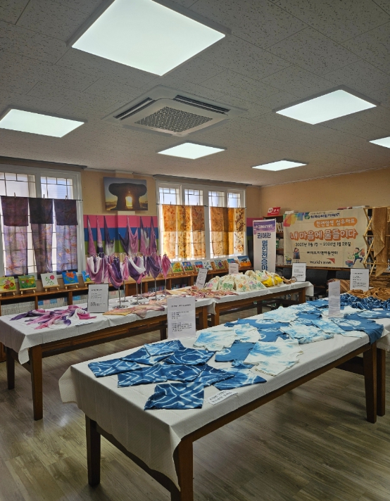 전시회에는 천연염색 명인의 세심한 지도 속에 센터 아동들이 직접 천연 재료를 추출하고 염색하여 완성한 섬유 아트 작품 50여 점이 전시됐다.