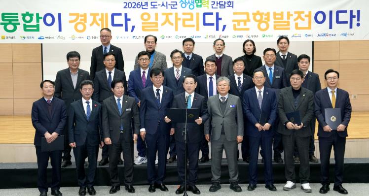 ![]() 전남도지사-시군협의회 환영문 발표 사진-김영록 전라남도지사를 비롯한 전남시장군수협의회장이 16일 도청 왕인실에서 열린 ‘26년 도-시-군 상생협력 간담회’에서 광주·전남 행정통합 추진에 대한 환영 성명서를 발표하고 있다. |