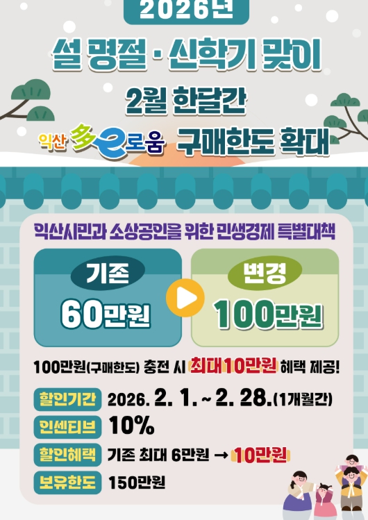 이번 혜택은 설 명절과 신학기 준비로 가중되는 장바구니 부담을 덜고, 지역 골목 경제에 활기를 불어넣기 위해 마련됐다.
