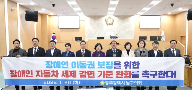 ![]() 광주광역시 남구의회, ‘장애인 자동차 세제 감면 기준 완화 촉구’ 건의안 채택 |