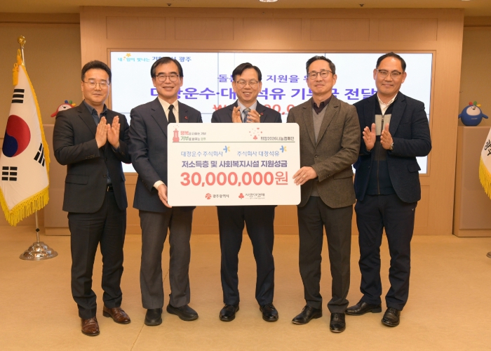 광주광역시는 22일 시청 비즈니스룸에서 대창운수와 대창석유의 기부금 전달식을 개최했다.