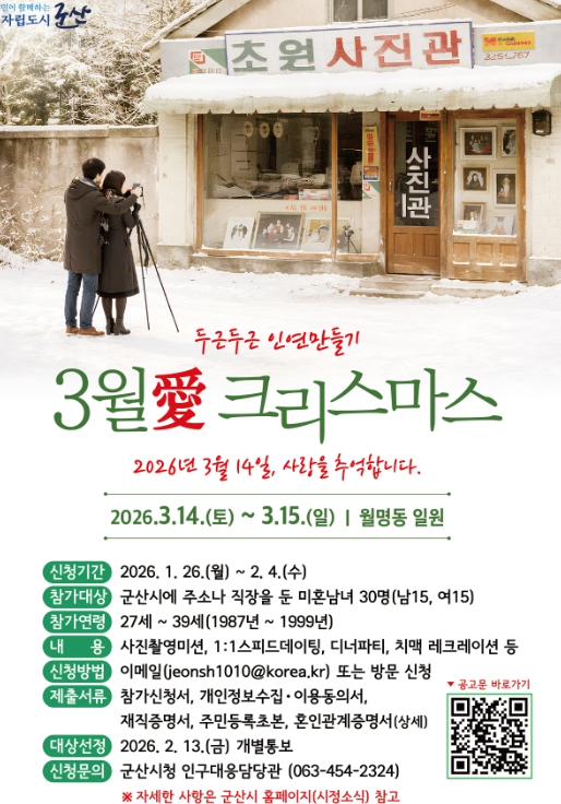 ![]() 군산시,‘3월愛 크리스마스’ 참가자 모집 |